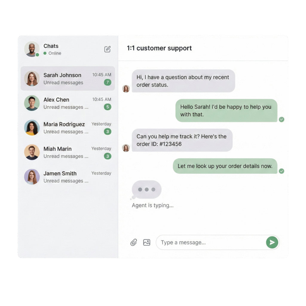 Handle all customer conversations in one place with read receipts, typing indicators, and message history.